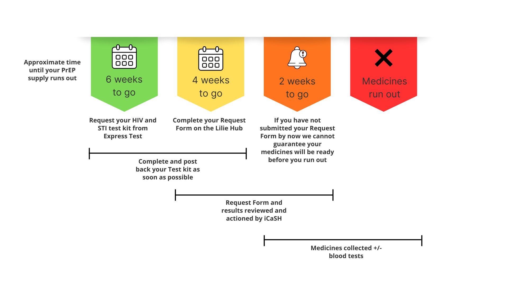 - Please note that it may take up to 2 weeks for you to receive your HIV and STI test results. These will be checked by iCaSH in advance of any further supplies of PrEP and/or DoxyPEP being made.
