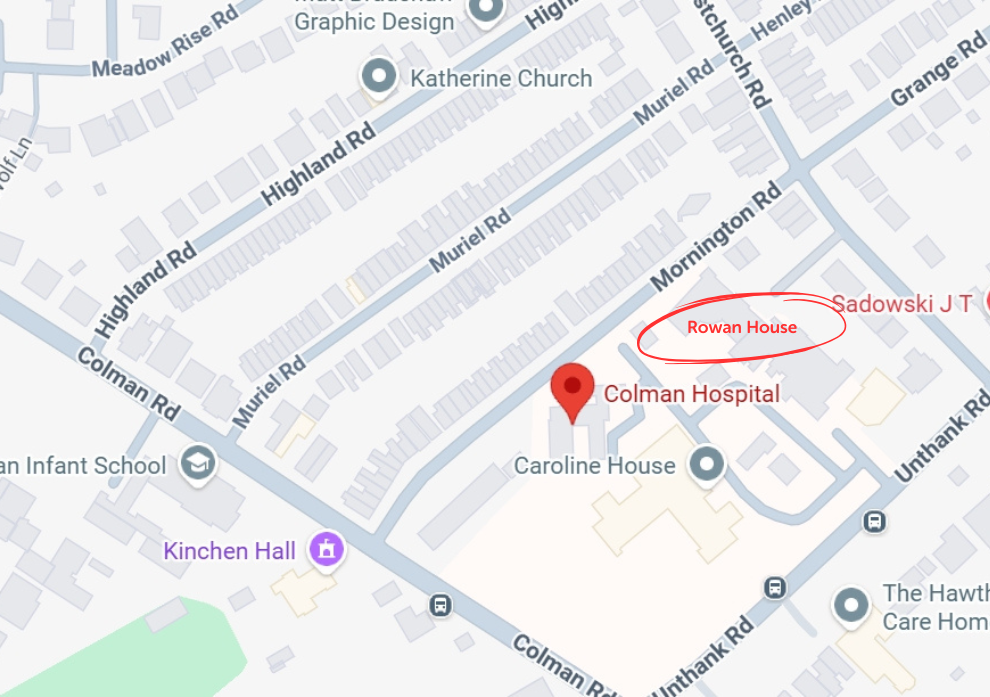• foot, Rowan House is to the rear of the Colman Hospital site
